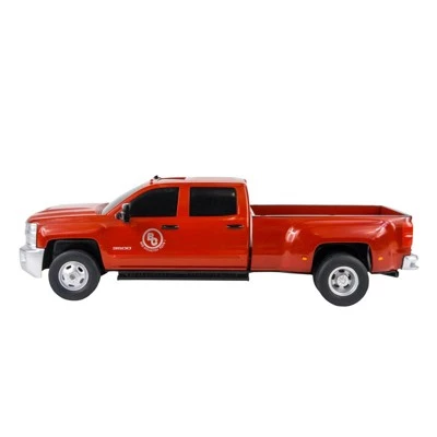 - This replica of Chevrolet’s Silverado Dually with crew cab is complete with a working tailgate and attachment to connect with the full line of trailers. This truck is made out of a proprietary blend of plastic that creates durable and lifelike toys, and rubber mirrors to prevent them from breaking.