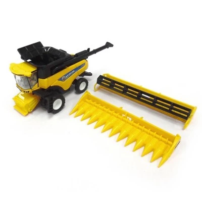 Made by ERTL, this 1/64 scale New Holland CR8.90 Combine comes with two interchangeable headers. This combine has a die-cast body and features front dual tires. It comes with a 12 row corn head and a grain platform. Per the manufacturer, it has a recommended age of 3+ years.