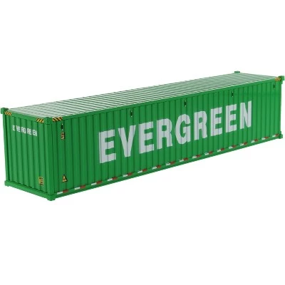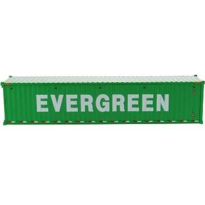 Brand new 1/50 scale model of 40′ Dry Goods Sea Container “EverGreen” Green “Transport Series” model by Diecast Masters.Brand new box.Detailed exterior.True-to-scale detail.Has opening rear doors.Officially licensed product.This model is made of plastic.Manufacturer’s original unopened packaging.Dimensions approximately L-9.5, W-2, H-2.25 inches.Compatible with 1/50 scale Skeleton Trailer by Diecast Masters.