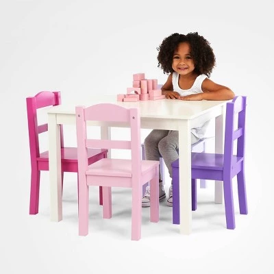 The set includes a rectangular table and four chairs in a stylish colorway sure to complement your home’s existing furniture whether it be in your toddler’s bedroom, playroom or the living room. This furniture set is easy to assemble with all hardware included. The sturdy table and chairs feature solid wood legs for additional support and long-lasting durability, ideal for girls aged 3-8 years.