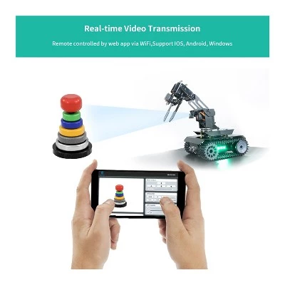 - SMART TECH: Functions of the robot include line tracking, color recognition, motion detection, real-time video transmission, obstacle avoidance, and more