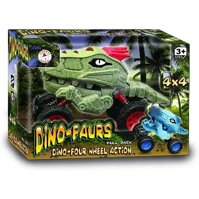 - JURASSIC FUN: The Aeromax Dino-Faur Green Pull back 4 wheel dinosaur truck with red accents is sure to be a big hit with dinosaur enthusiasts.
