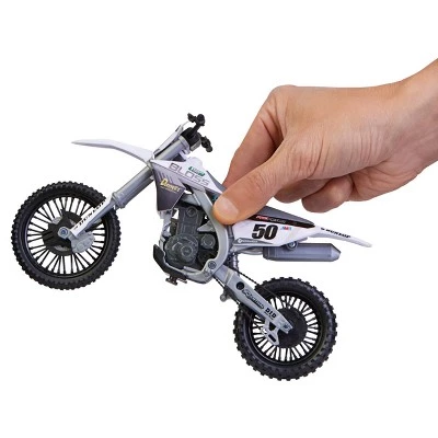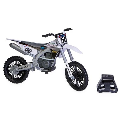 - Feel the adrenaline of Supercross with the all-new, official 1:10 scale die-cast motorcycles! Race and pull off tricks or display your bike with the included stand!