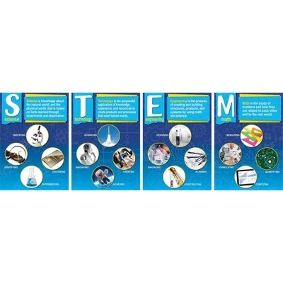 Barker Creek’s STEM Poster Set is a perfect addition to your classroom or workplace! Each of the four posters in this set measures 19″ high x 13-3/8″ wide. This set includes four posters that visually support key STEM concepts — Science, Technology, Engineering, and Math. Why is it critical that students be well versed in STEM? The simple answer is that these disciplines pervade every aspect of our daily lives. Coordinating products are available search: Barker Creek STEM/STEAM.