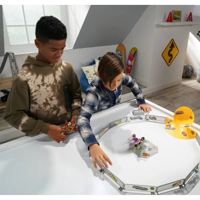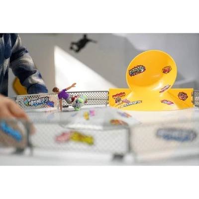 Includes: 1 All-Way Ramp, 1 Vert Dome Ramp, 12 Adjustable Fences, 13 Suction Cups, 1 Deco Sticker Sheet, and Instruction Sheet. Boneless Skater, skateboard and charger not included.