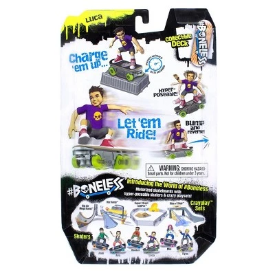 #Boneless is a line of incredible electric-powered, mini stunt skateboards with hyper-poseable skaters and crazy stunt playsets. #Boneless super-charged mini-boards do some insane stunts! They come with a power charger that quick-charges the board in just seconds. But what makes #Boneless skaters so unique is that they twist and bend, like they’re actually boneless.