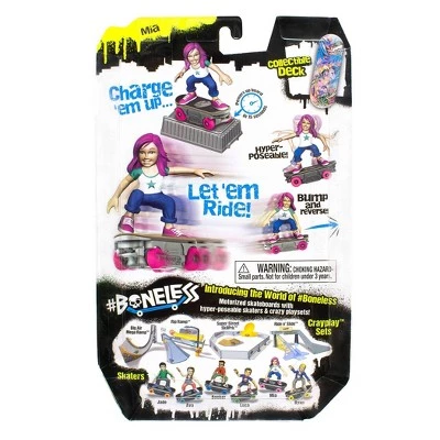 #Boneless is a line of incredible electric-powered, mini stunt skateboards with hyper-poseable skaters and crazy stunt playsets. #Boneless super-charged mini-boards do some insane stunts! They come with a power charger that quick-charges the board in just seconds. But what makes #Boneless skaters so unique is that they twist and bend, like they’re actually boneless.