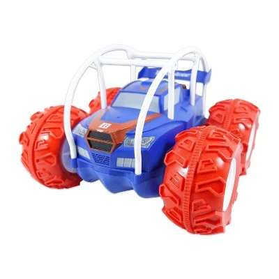 - •STUNT REMOTE CONTROL CAR – Not just an ordinary RC car, this cool, unique toy car does 180-degree flips and 360-degree spins that will amaze kids and adults alike. Use the included tire gauge and pump to set the tire pressure for extra excitement and hands-on action.