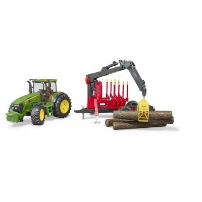 Whether as a building material or for energy Generation, The raw material wood is on trend, and sustainable, efficient forestry is more topical than ever. With the new forestry set from Bruder, This exciting theme can be recreated in an extremely realistic way. This tractor is designed for heavy loads, with a rated output of 245 HP and a capacity of 6. 8 liters. The very detailed model from Bruder features a fully glazed cab with opening doors, a detachable front weight, an off-road, steerable front axle and a height-adjustable drawbar coupling. The unique toy/steering system with steering wheel extension through the cab roof also make this tractor easy to man oeuvre for children, despite the cab glazing. The highly functional forestry trailer takes care of the tree trunk transportation and is already equipped with 4 tree trunks. The model features a rotating and swiveling loading crane, which not only transports the tree trunks but also loads and unloads them. Due to its off-road axles, The trailer can easily cope with even difficult terrain. The world forestry worker (item no. 60030) is the perfect addition to this combination.
