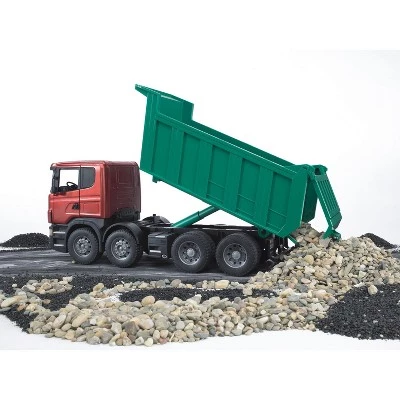 The Scania R-Series Dump Truck features an “incredibly” realistic driver’s cabin with doors that can be opened, a cab that tilts forward to reveal a full view of the engine block, folding side-view mirrors and a dumping bucket to move big loads. Spare wheel included for backup on those rough roads, easily accessible behind the driver’s cab. The NEW Scania Trucks are a feast for the eyes of every truck fan.