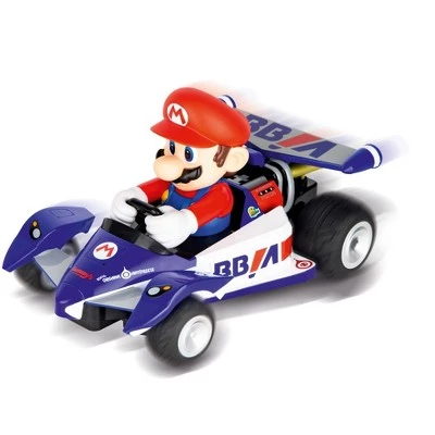 Here comes Mario in the Mario Kart Circuit Special race car! With a top speed of just over 6-mph, Mario will speed around the racecourse in style. The RC car handles great with its full-function technology and differential gear transmission. Marioβs Circuit Special car measures 9-inches long and is officially licensed by Nintendo. The car is powered by a 3.2V rechargeable LiFePO4 battery giving you up to 20-minutes of race time on just a 50-minute charge. The use of 2.4GHz technology allows up to 16 cars to be driven simultaneously giving you plenty of competition! Mario comes ready to run with all vehicle and controller batteries included!