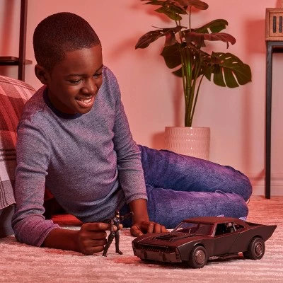 Speed into action with the Batman Batmobile – featuring authentic movie-style sculpting, over 15 sounds effects, and LED lights that will bring your Batman adventures to life! Create epic Batman adventures with the included 4-inch Batman figure! Use your imagination and recreate your favorite Batman Movie moments. The Batmobile can fit the included 4-inch Batman figure with 11 points of articulation and cloth cape. Push down on the engine to activate the engine lights and sound effects! Roll the Batmobile to change the lights and sounds, and into Gotham City! This iconic Batmobile is a must-have toy for boys, girls, and Batman fans ages 3 and up! DC fans of all ages love Batman action figure. With a range of figures to collect, you can now expand your Batman collection with Batman, Selina Kyle, The Penguin and more (each sold separately). Collect all your favorite characters from The Batman movie. Engage your imagination and create your own Batman battles. Bring your favorite Batman Movie moments to life with the Batman Batmobile!