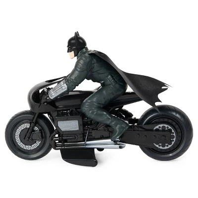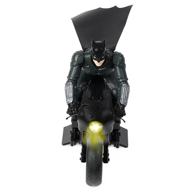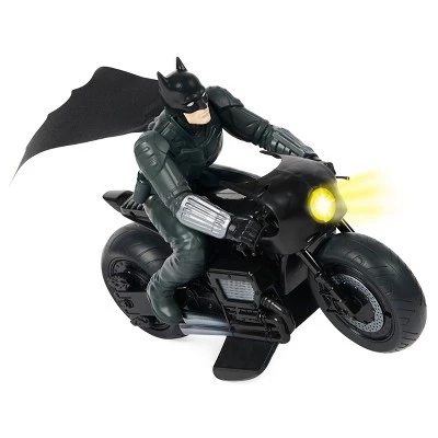 - Race into Gotham City with the remote-control Batcycle. This RC vehicle features an easy-to-drive remote control, authentic movie styling, working headlights and a fixed Batman rider figure!