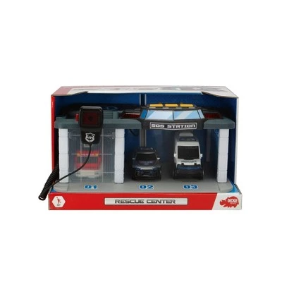Rescue Center: all the helpers under one roof. The Dickie Toys Rescue Center is the ultimate gift idea for all fans of rescue vehicles. The rescue station easily accommodates the three free-wheeling vehicles. The fire engine, police car and ambulance ensure that every call for help in the toy town can be answered. And speaking of answering, the station has a microphone with a loudspeaker function, so that operation leaders aged three years and upwards can issue the correct commands. In addition, the doors can be opened and the station also has light and sound effects. For the ultimate in gaming fun, all that needs to be done is to insert the included batteries. Recommended for ages 3 years and up.