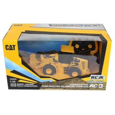 Made by Diecast Masters America, this 1/35 CAT 950M Wheel Loader Radio Control Made of Durable Plastic features Full function radio controlled. 2.4G multi-player frequency with a 25m range, Requires 6AAA batteries (not included), Non-proportional functions include forward, reverse, left and right steering. Bucket up and down. Front wheel steer. Machine does not articulate. Package Includes: Wheel Loader, Controller, Instruction Manual, Window box package. Recommended for adults 8+. Measures approximately 9.625″L x 3.625″W x 3.875″H.
