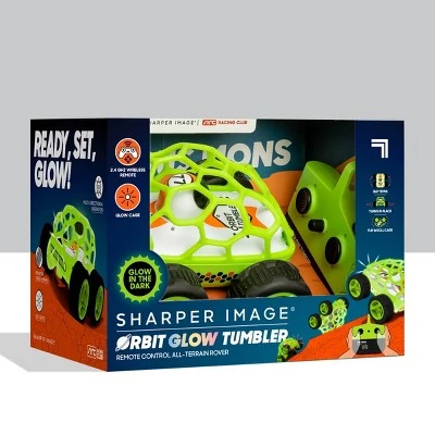 Built for high octane racing and stunts, the Sharper Image Orbit Glow Tumbler will bring out the race car driver in you! Tear across the yard and send the car flying and tumbling with its unique cage design and race-ready glow-in-the-dark paint job! Oversized tires help grip onto surfaces for optimal performance.