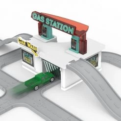 - Comes with toy car, tow truck, recycling truck, and forklift truck
