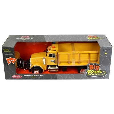 The ERTL Big Farm Lights and Sounds Peterbilt Model is a great addition to any collection. It features a truck with a dump box and snow plow. The dump box lifts, and the gate opens, making it easy to dump out whatever you’re hauling when you reach your destination. Removable snow blade lifts and pivots to push that “snow” out of the roadway. The front cab has real opening doors, and the front axle is steerable, making it easy to drive wherever you want it to go. This toy truck also features lights and sounds for plenty of realistic playtime action and includes 3 AAA batteries so the fun can start right away.