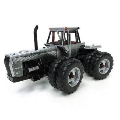 Made by ERTL, the leading in farm toys for over 60 years. This 1/32 White 4-210 Field Boss 4WD Tractor was part of the 2013 National Farm Toy Show and has a die-cast front body, hood and cab, rear body, and fuel tank fenders, rear outer dual wheels, authentic style rear hitch. This tractor features a three-point hitch which raises and lowers, windshield wiper, cab grab rail and clear windows that reveal detailed interior. Also, offers articulated steering with steering hydraulic cylinders and authentic markings. Recommended Age 14+ Years, Not recommended for play!