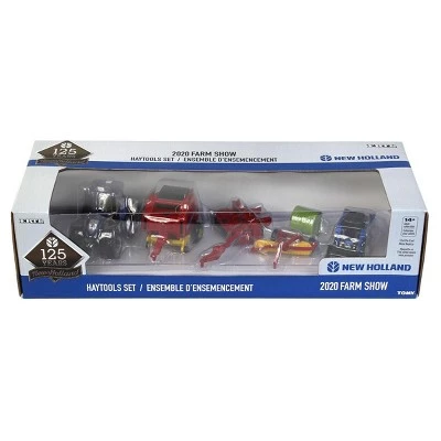 Made by ERTL, the leading in farm toys for over 60 years. This 1/64 New Holland 5 Piece Set is a 125th Anniversary One Time Production from 2020 Farm Show. The set is a die-cast construction and includes T6.180 tractor, special blue skidloader, rake, baler and mower conditioner. This is a special edition set in honor of New Holland’s 125th Anniversary and ERTL’s 75th Anniversary. This 5-piece set is a little piece of history. Recommended for ages 14+, NOT recommended for play, DISPLAY ONLY.