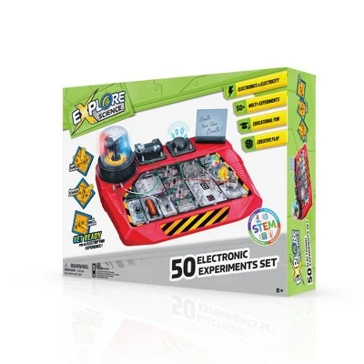 Connect with key principles of electricity through this engaging STEM kit from Explore Science! With this preassembled circuit board, junior explorers can have a truly electrifying experience as they perform more than 50 detailed experiments involving elements like lights, sounds, magnets and touch plates. While they play, users will learn basic terminology and concepts about electrical currents as they manipulate the wires to create light effects, animal sounds, alarms and more.