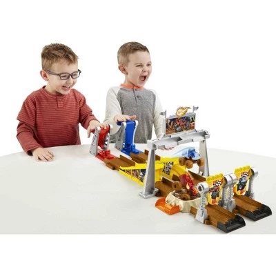 - ​Race Blaze and Crusher to the finish line with this Blaze & the Monster Machines track set featuring pits of mud slime