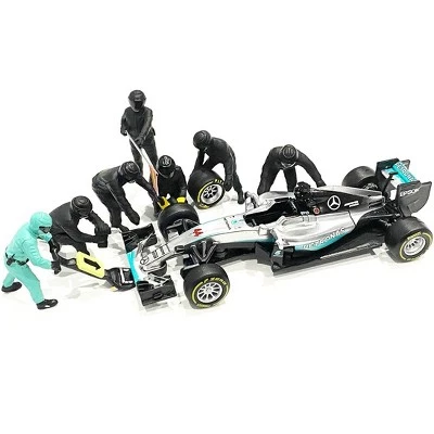 Brand new 1/43 scale models of Formula One F1 Pit Crew 7 Figurine Set Team Black for 1/43 scale models by American Diorama.Brand new box.Only 7 figurines will be received.Does not come with the car shown.Each figurine is approximately 1-1.5 inches tall.Final uniform color based on 2020 season color.THIS SET INCLUDES FOLLOWING FIGURINES:1) Stabiliser.2) Tyre Gunner.3) Front Tire Off.4) Front Jack Man.5) Front Wing Adjuster.6) Lollipop Man (lollipop included).7) Front Tyre On (spare tire Included).