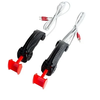 - Set includes two sleek remote control race cars powered by thumb pedal speed controllers