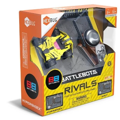 Power up with the newest HEXBUG BattleBots – – Rivals 6.0! Featuring the latest designs from the 2021 Season… Rusty and HyperShock have joined the fight. With all-new features, these BattleBots are ready to level the battlefield! These bots are compatible with all BattleBots IR products. Battle up to four bots simultaneously with a multiple-channel controller (each sold separately). Knock your opponent’s armor off to win the battle, reattach the armor, and prepare for round two!