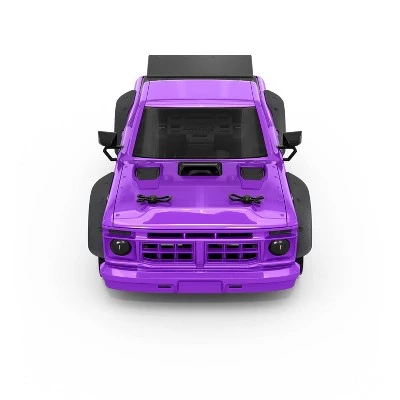 HEXMODS are the customizable RC model vehicles bringing hobby-grade to retail prices! HEXMODS Pro Series Stunt Circuit Truck includes a truck chassis capable of high-octane speeds and a mean truck body! Each kit comes ready for custom modification thanks to a body kit that allows you to swap out hood, spoilers, and an alternate set of rims and much more. Performance can be upgraded too; changing suspension, tires with different grip levels, gears for tuning to adjust speeds are included to provide total customization. Then personalize your truck with decals to separate yourself from the pack. The truck is equipped with LED powered under glow for lighting up any driving surface! Comes with a 2.4 GHz remote for top level steering and play. 1:28 Scale.