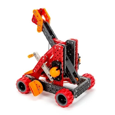 This construction kit features more than 160 pieces that are great for budding engineers. Build, test, and launch projectiles over 20 feet. Turn the dial to load the catapult and pull the launching lever to fire away! Launch into a world of fun with the redesigned VEX Robotics Catapult! Develop your love for physics and STEM concepts, all while letting your playful imagination run wild. Whether your goal is precision, distance, or even trick shots, the Catapult can do it all!