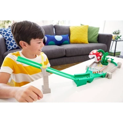 - The Piranha Plant Slide play set comes with a Luigi die-cast kart and the Thwomp Ruins set includes a Mario die-cast kart