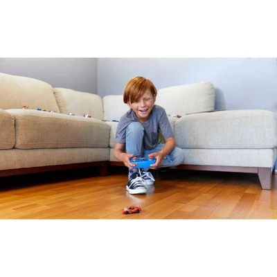- Hot Wheels R/C 1:64 mini cars can be driven on the table or floor and come with an adapter to easily guide a car onto any iconic Hot Wheels orange track (sold separately)