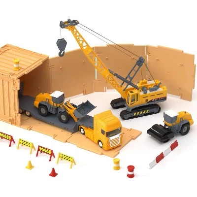 - Build Your Own Fun: Cargo transport set includes 7 trucks, road signs, barriers cones and more. The construction set is made up of 50+ pieces.