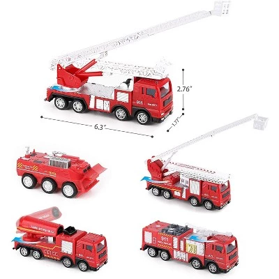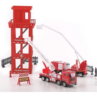 - Build Your Own Fun: Fire truck set includes 5 trucks, 1 tower, 1 crane, barriers, road signs, and more. The construction set is made up of 50+ pieces.