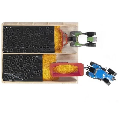 Your young farmer will enjoy this quality Silo Bunker in 1/32 scale size. The Dual Bunkers allow even more efficient farming and increases the level of play and imagination. They can finally enjoy the fun & operations of an actual farm and storage. Specially made for use in combination with Many 1/32 toys Including ERTL & Universal Hobbies & SikuBoth grass and corn are mown for the cows in the summer. In the winter, the farmer can then remove the feed from the silo with the tractor. If you want to keep the cows’ food well, it is smart to put a cover over it. It cannot rain or spoil. The straps included ensure that the pool cover does not blow away. Cover and Tires are sold seperately !
