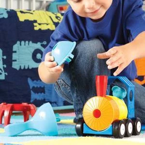 Build three different vehicles from just one set of mix-and-match parts with the 1-2-3 Build It! Rocket-Train-Helicopter from Learning Resources. Chunky, easy-to-handle parts let kids build and rebuild on their own before embarking on imaginative journeys to far-off destinations—blast off to distant stars aboard a rocket, fly through the air above a make-believe city with a helicopter, or chug down the tracks toward the station with a train. Each fun, durable vehicle also doubles as an easy vocabulary lesson, introducing kids to the completed rocket, train, and helicopter, as well as parts ranging from wheels to propellers. In addition to encouraging imaginative and vocabulary skills, the vehicles of the 1-2-3 Build It! Rocket-Train-Helicopter develop fine motor skills and understanding of early engineering concepts through hands-on building. There’s even a kid-sized play wrench that helps kids get started down the path towards using real tools and problem-solving skills. Ages 2+.