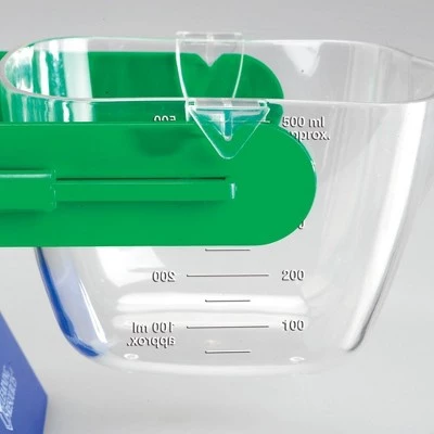 - Removable, clear 1/2 liter buckets with spouts for easy pouring