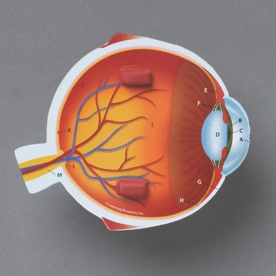 Realistic model of human eye identifies cornea, iris, pupil, lens, ciliary muscle, zonules, sclera, choroid, vitreous humor, retina, macula, optic disc and optic nerve. Opens for inner exploration. When soft foam model is split, one side shows the name of each part.We’re Learning Resources®, and we’ve been helping parents and teachers build generations of amazing kids since 1984. From ABCs and 123s to fine motor and STEM skills, our educational toys offer kids the building blocks they need to succeed in school and develop a lifelong love of learning. Discover countless ways to learn through play with our award-winning products, including Toy of the Year winners Tumble Trax®, Botley® the Coding Robot, and Coding Critters™.