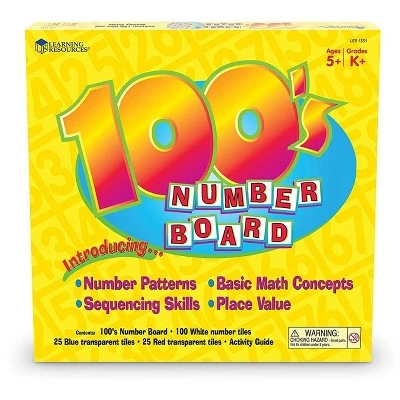 Introduce kids to number patterns, sequencing, and place value. Use the blank back-side for patterning and graphing activities. Includes 100 numbered white tiles, 25 transparent red tiles, 25 transparent blue tiles and activity guide.We’re Learning Resources®, and we’ve been helping parents and teachers build generations of amazing kids since 1984. From ABCs and 123s to fine motor and STEM skills, our educational toys offer kids the building blocks they need to succeed in school and develop a lifelong love of learning. Discover countless ways to learn through play with our award-winning products, including Toy of the Year winners Tumble Trax®, Botley® the Coding Robot, and Coding Critters™.