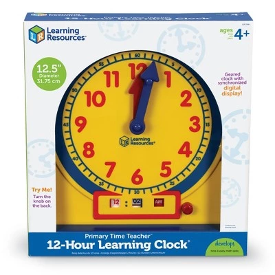 Teach both analog and digital time, plus elapsed time, with this large, geared interactive clock. Invite students to move the minute hand and see the change in the digital display window. Keep the window closed to assess clock-reading skills. Clock is accurate to the minute.We’re Learning Resources®, and we’ve been helping parents and teachers build generations of amazing kids since 1984. From ABCs and 123s to fine motor and STEM skills, our educational toys offer kids the building blocks they need to succeed in school and develop a lifelong love of learning. Discover countless ways to learn through play with our award-winning products, including Toy of the Year winners Tumble Trax®, Botley® the Coding Robot, and Coding Critters™.