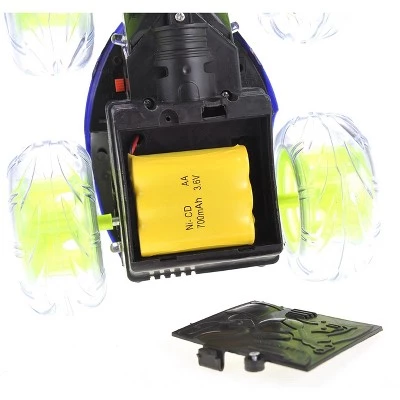 Twist and Turn. This RC Stunt Car can do it all. It can Flip, Twist, Spin, and Shines bright w/ LED Lights. This remote control car can race, and, perform 360° spins and flip with its LED dazzling headlights. Moreover, its back wheel can stretch for transformation. Great kids toys to let the little boys and girls enjoy a wonderful car show & fun This Unique Stunt Car can be enjoyed by Adults and Kids Alike. No matter the Age, No one can resist the might of the twister RC. (Batteries Sold Separately)