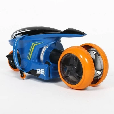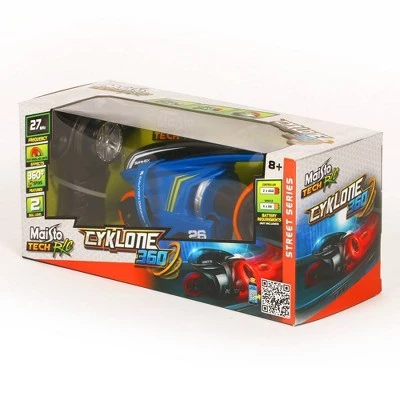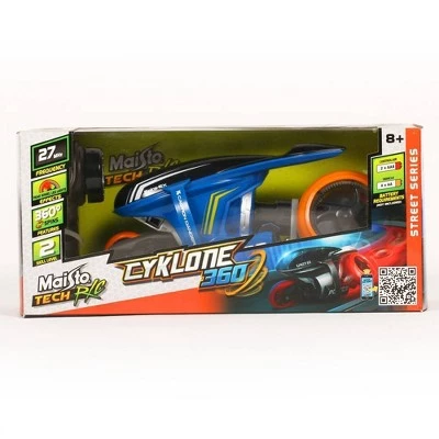 Perform high speed spins and right turns with Maisto Tech’s Cyklone 360. This futuristic motorcycle can perform easy 360 degree turns, and rear wheels rotate to adjust for sharp turns. Color changing LED lights add to the show. Batteries are not included for the vehicle or the controller, but they require 4 AA and 2 AAA batteries respectively.