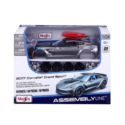 Maisto’s Assembly Line Model Kits are highly detailed models of liscensed cars; this model is of the 2017 Chevrolet Corvette Grand Sport. The model is a 1:24 scale that has opening parts, and detailed wheels that roll for further authenticity and play. Asembley of the model is easy, and a screwdriver is included for the assembler’s conveniece. The model comes pre-painted and glue is not required to assemble the model kit. Bonus custom wheels are included to change the vehicle’s style.