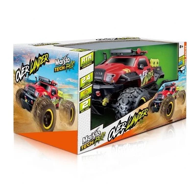 Maisto Tech R/C’s Overlander is large and in charge. Large tires and suspensions define the radio contolled vehcile as an item that can handle rough terrain. The vehicle has an off-road styling, and the roof has a utilty rack system that is equpped with accessories. The Overlander is ready to explore!