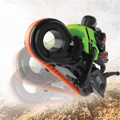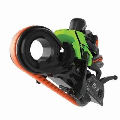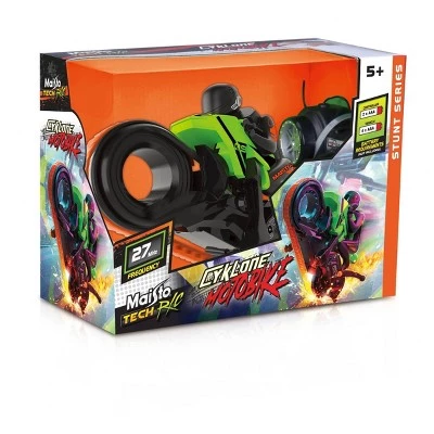 The Cyklone Motobike looks like it is straight out of a sci-fi movie. One single tread straddles the hubless wheel design and gives the bike its power! Climb, race, and do some insane wheelies! Batteries are required for this item, but they are not included. The vehicle requires 4 AAA batteries, while the controller requires 2 AAA batteries.