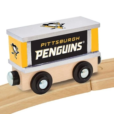This MasterPieces NHL Team the Pittsburgh Penguins featuring a wooden box car toy train with your favorite hockey team logo and colors! Each NHL box car train has a unique Zamboni shape. This box car train is compatible with most 1″ wooden train tracks, and is the perfect gift for all kids, ages 3 and up!