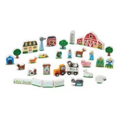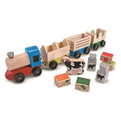 This busy wooden train is just what’s needed to transport a new cow or take cans of milk, fruit and vegetable crates to market. Your young engineer’s imagination will be engaged by the colorful engine and the three interchangeable cars. Hours of fun will be provided as your child loads and unloads the train cars and pretends to steer the train.