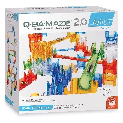 Q-BA-MAZE is a unique system of colorful cubes that interlock to form an exciting marble run. The big difference? The configurations are UNLIMITED: create runs shaped like rockets, robots, butterflies, or whatever design you want!This kit includes: The Q-BA-MAZE Rails Builder Set with 10 straight-away rails that connect easily to any cube or to each other to create tracks that send your marbles zigzagging through the maze! With 40 single-exit cubes, 20 bottom-exit cubes, 20 double-exit cubes, 4 marble catchers and 20 marbles, the possibilities are endless!The FREE Bonus Marble Bag with 20 extra marbles in a drawstring bag. Add a cascade of extra marbles to your marble play!