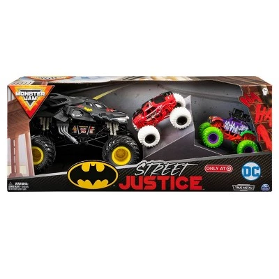 - Use your imagination to create your own epic stories straight out of the box with your new Monster Jam trucks! Race through Gotham City with Batman-themed trucks!